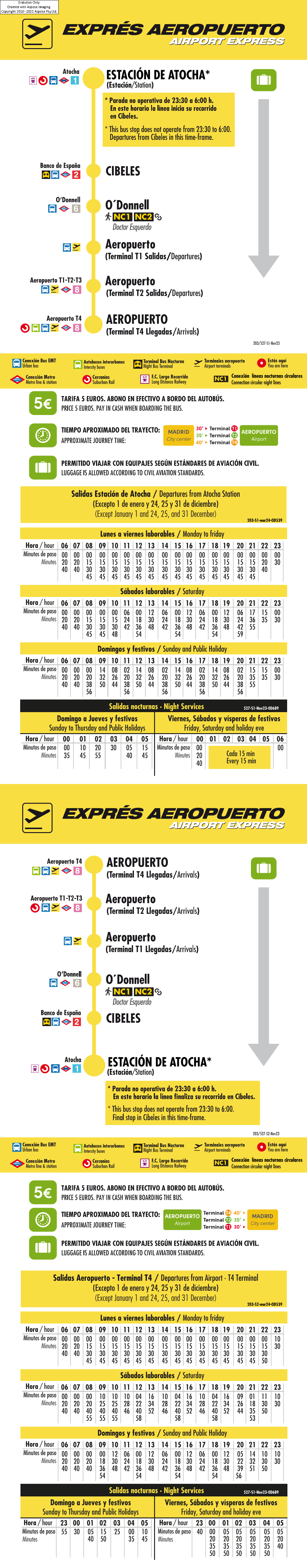 Express connection between Adolfo Suárez- Madrid-Barajas Airport, the centre of Madrid (Cibeles) and Atocha Transport Interchange.