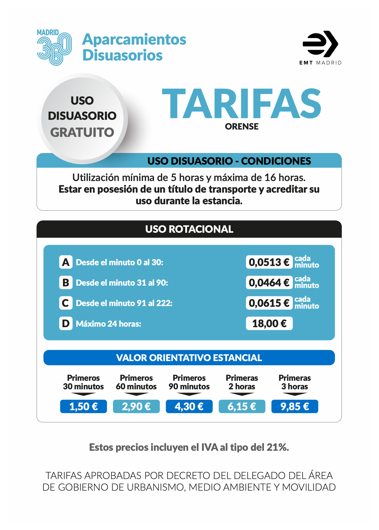 ** NOTA: Estacionamiento disuasorio gratis con uso de cualquier título de transporte público colectivo, por un período de tiempo no inferior a 5 horas ni superior a las 16 horas.