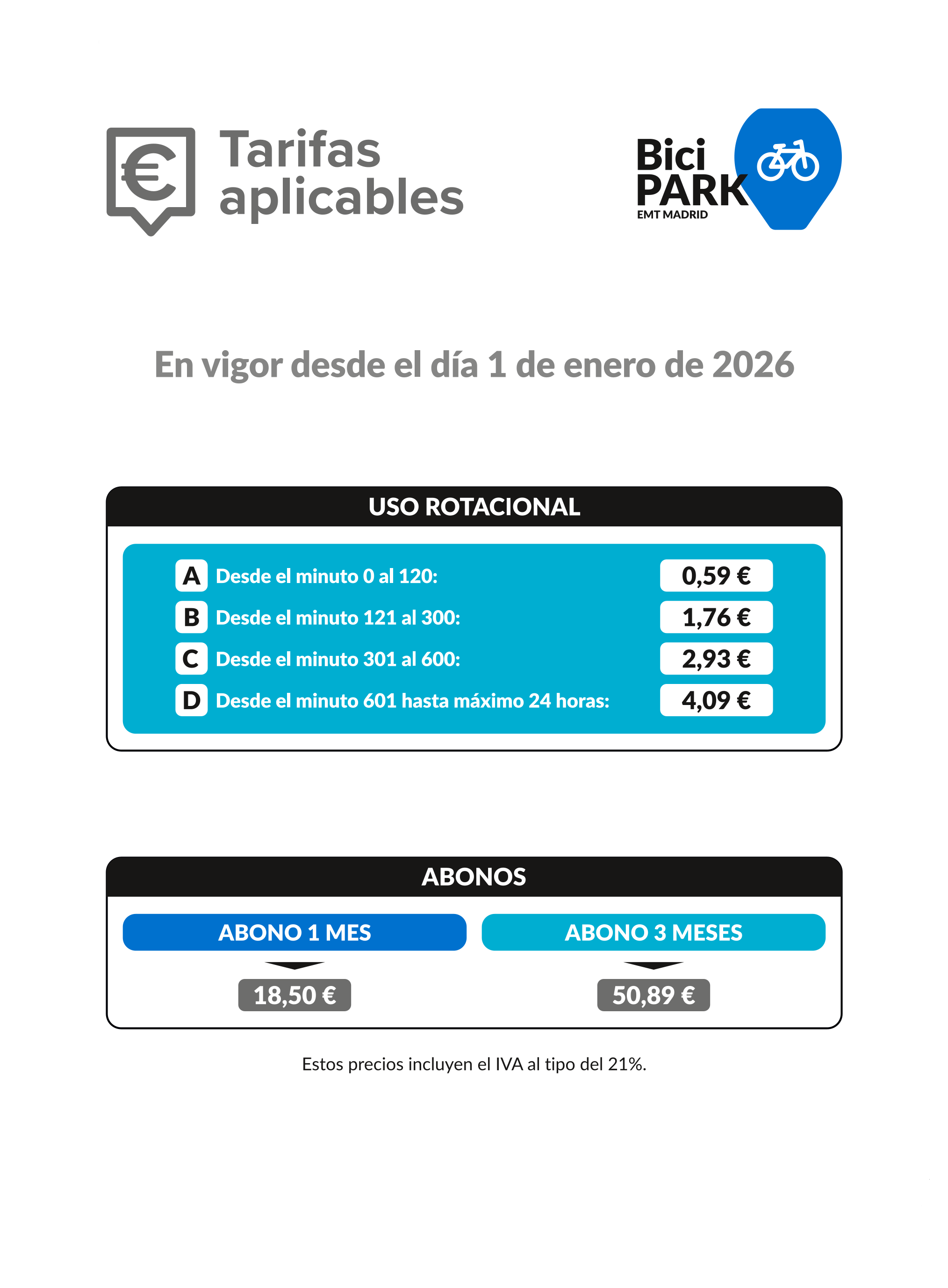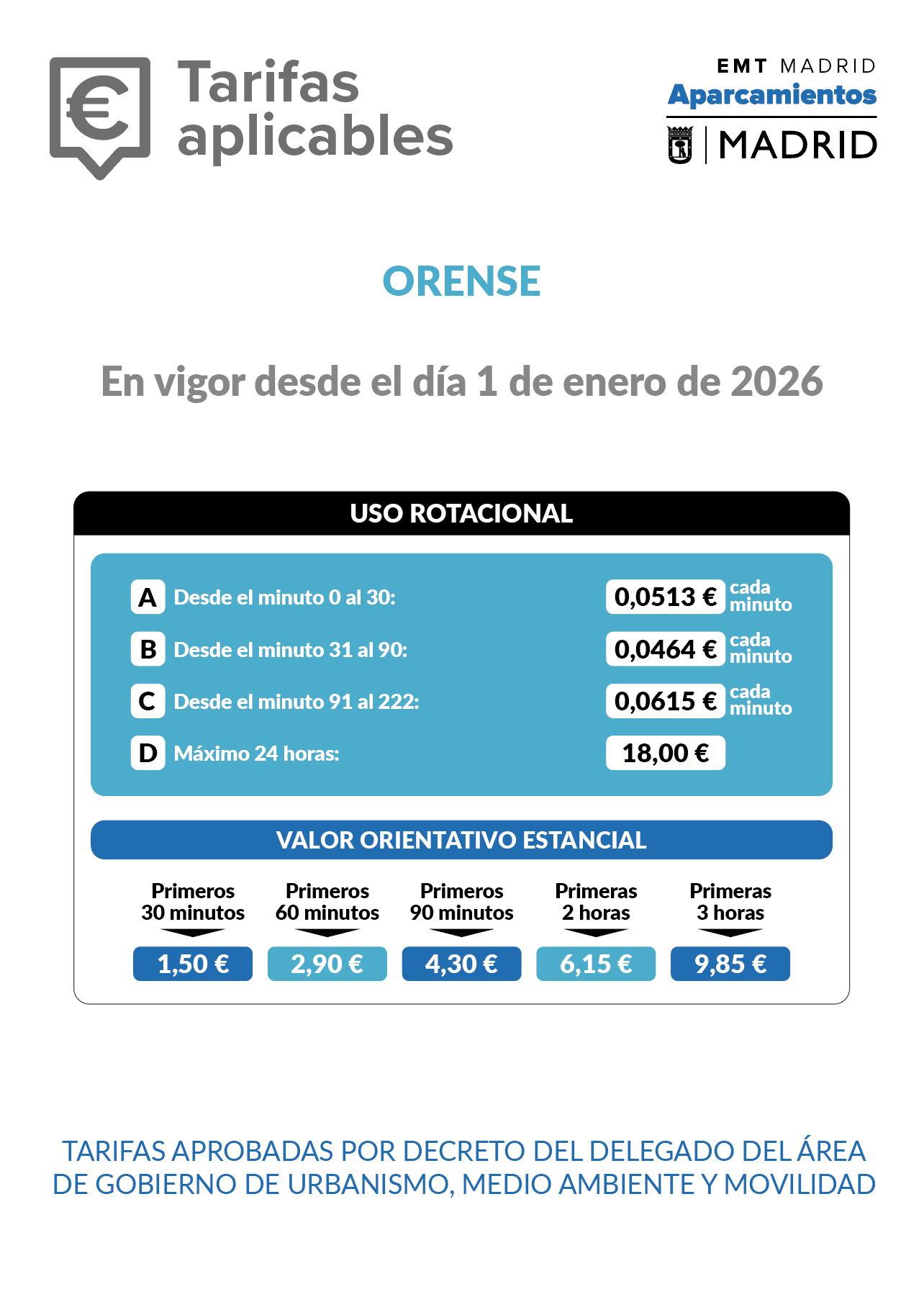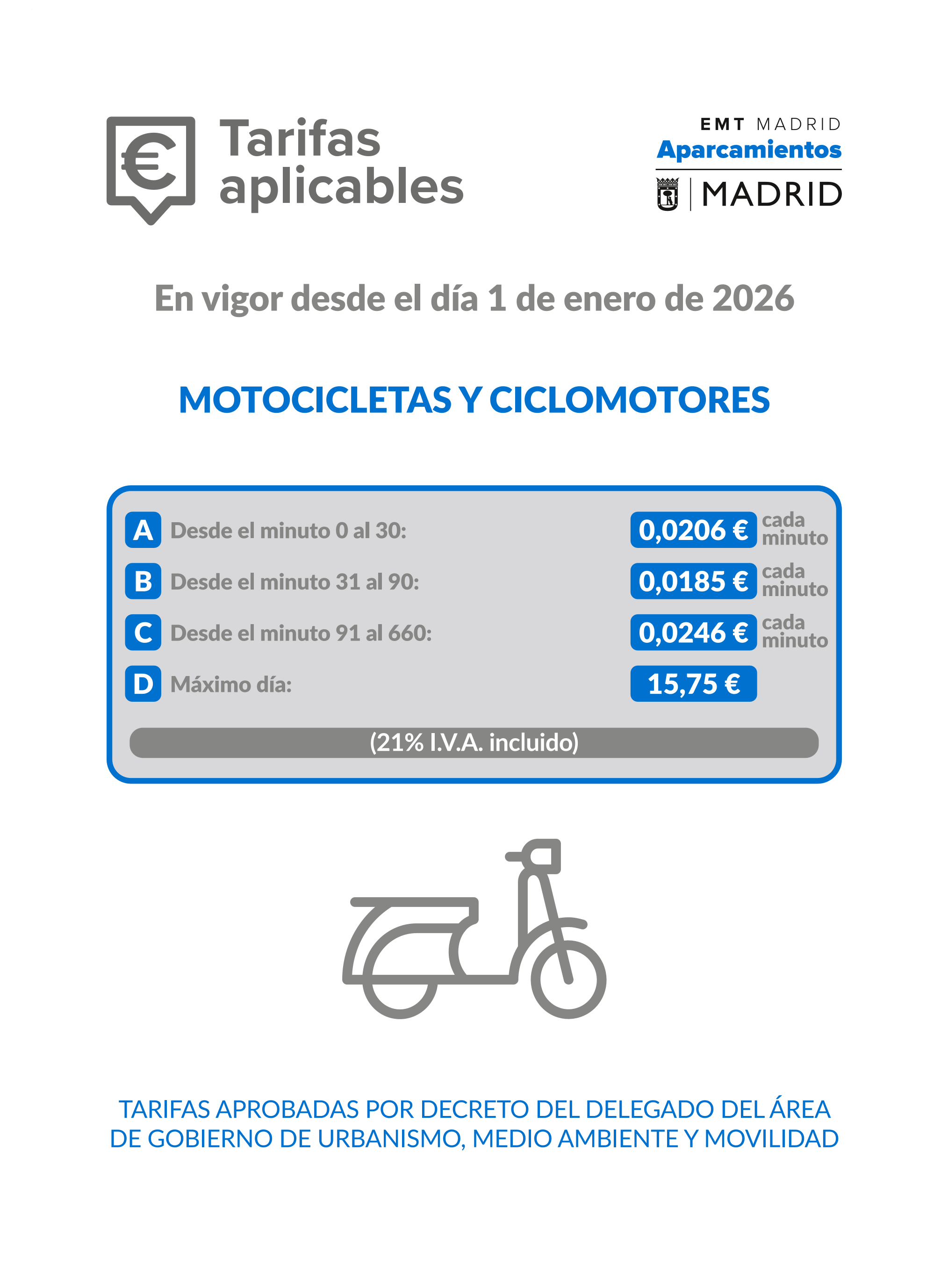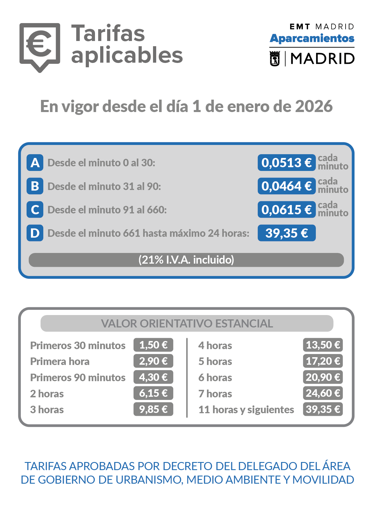 ** NOTA: Estacionamiento disuasorio gratis con uso de cualquier título de transporte público colectivo, por un período de tiempo no inferior a 5 horas ni superior a las 16 horas.