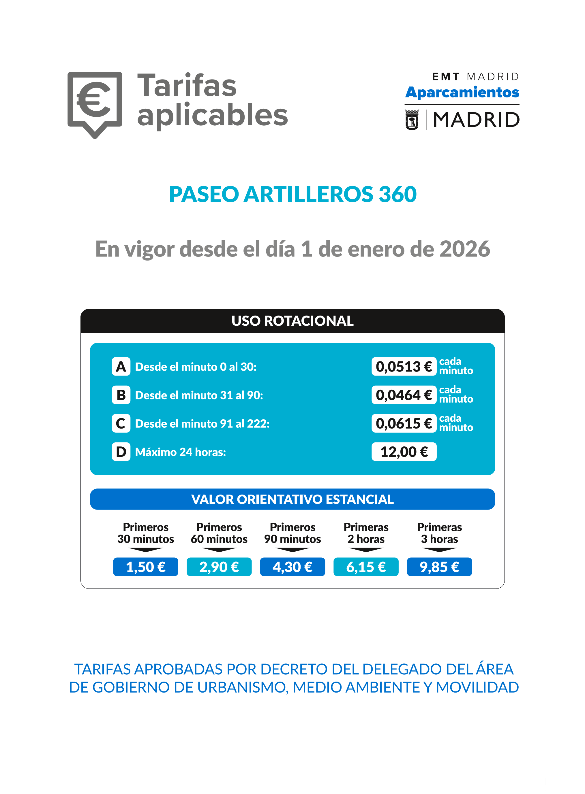 Tarifas reducidas para el aparcamiento Paseo de Artilleros 360