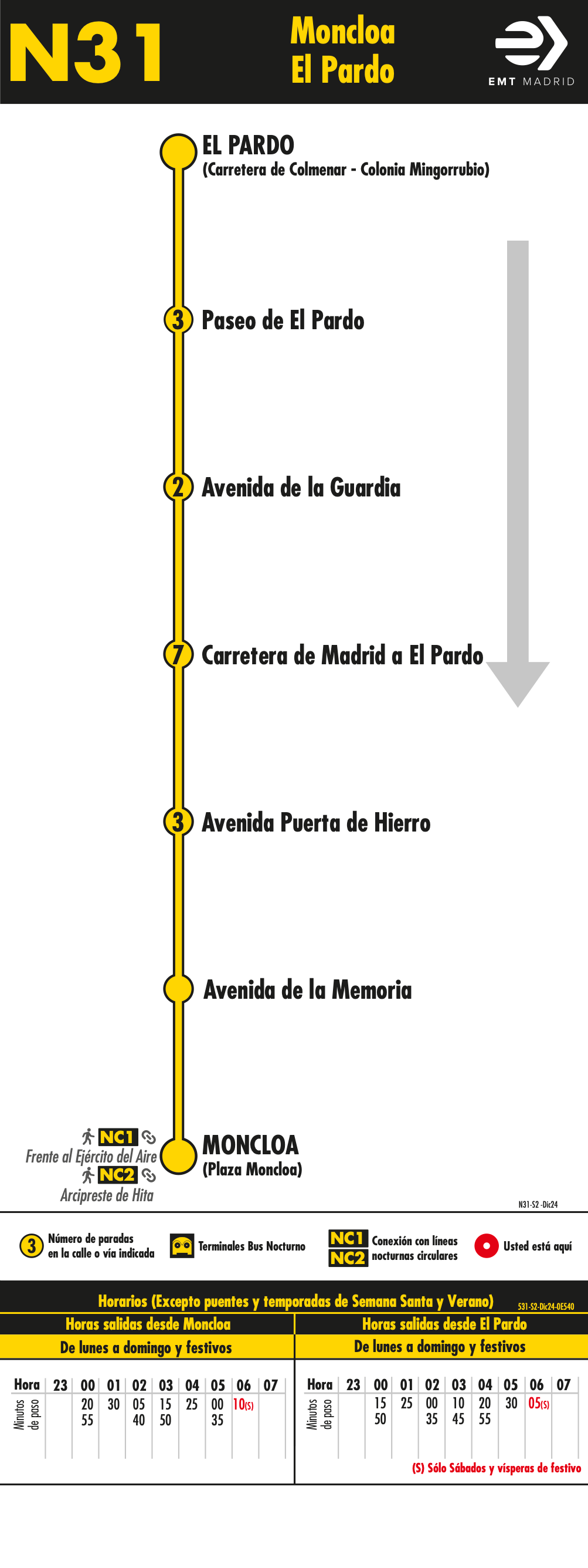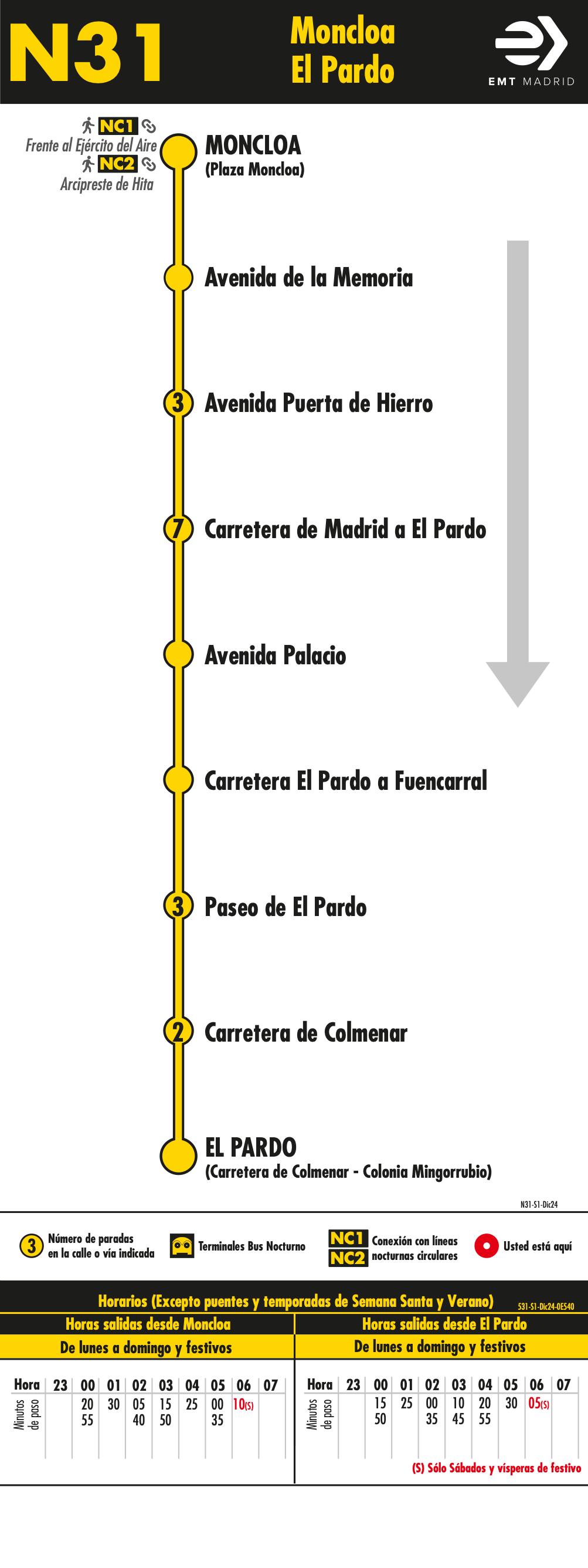 Paradas de la línea N31 Sentido MONCLOA-EL PARDO