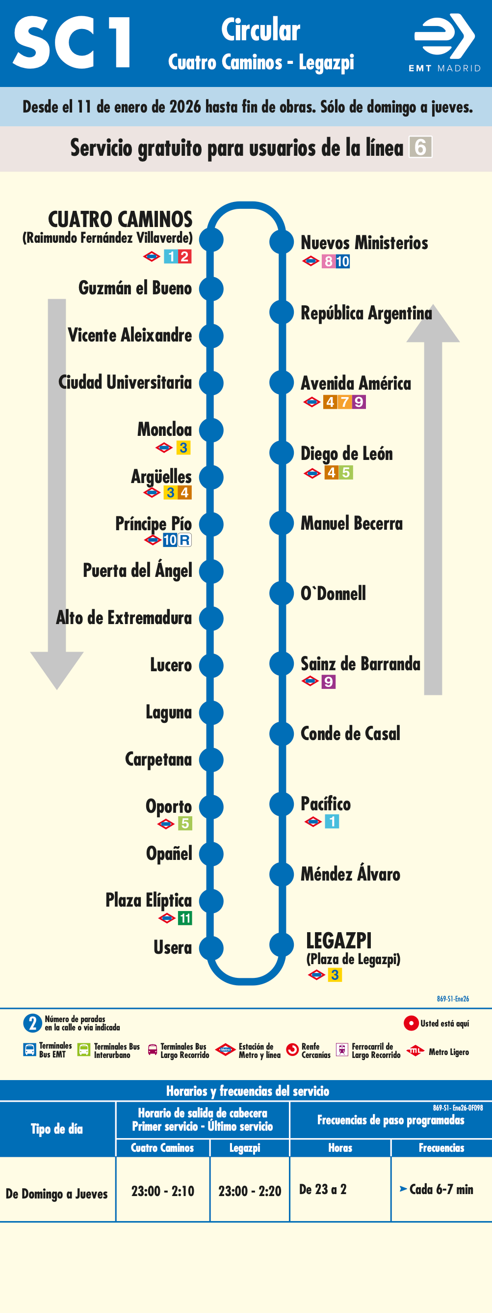 Paradas de la línea SC1 Sentido LEGAZPI-CUATRO CAMINOS
