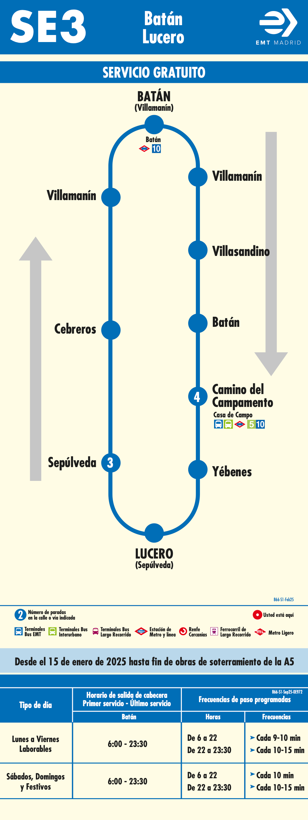 Paradas de la línea SE3 Sentido BATÁN-LUCERO
