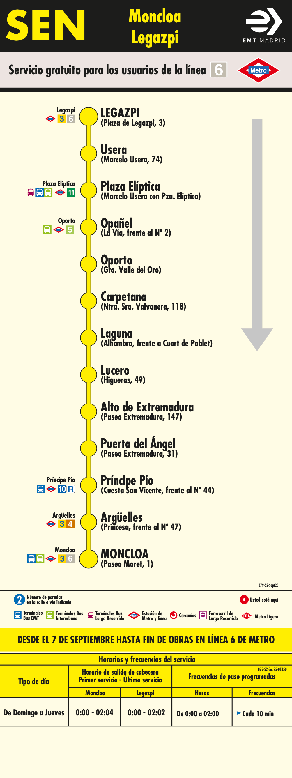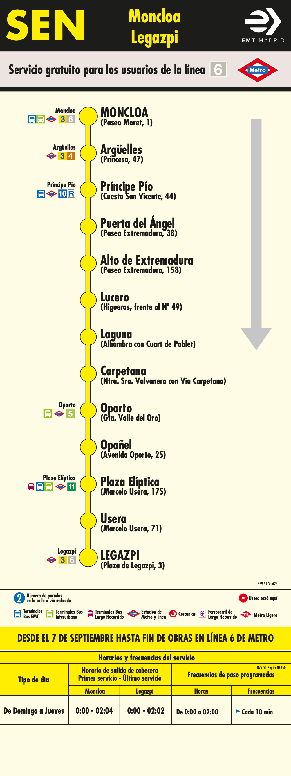 Paradas de la línea SEN Sentido MONCLOA-LEGAZPI